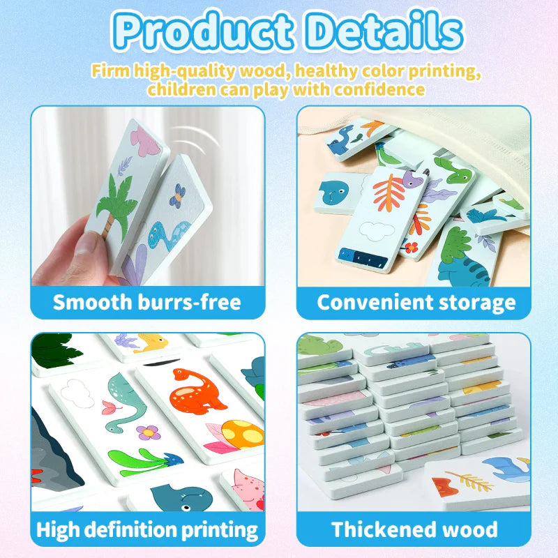 Barn leker ofta med leksaker som inte tillräckligt stimulerar deras kreativitet. DinoDomino inspirerar till fantasifull lek med sina färgglada dinosaurieformer, där barnen kan stapla, bygga och låta fantasin flöda i timmar.