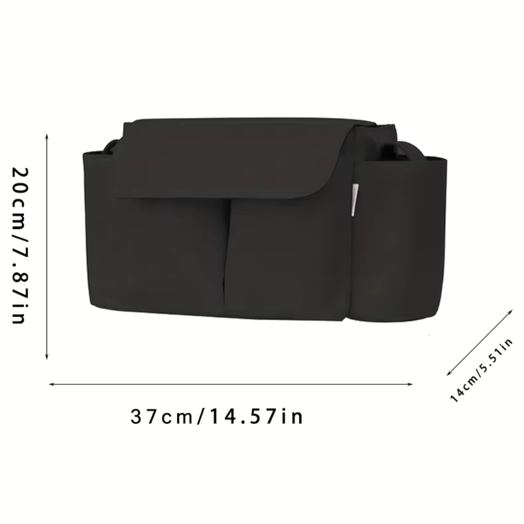 Ha allt nära till hands under varje utflykt. Denna barnvagnsorganizer kombinerar översikt, ordning och stil – ett oumbärligt tillbehör för hela familjens äventyr.